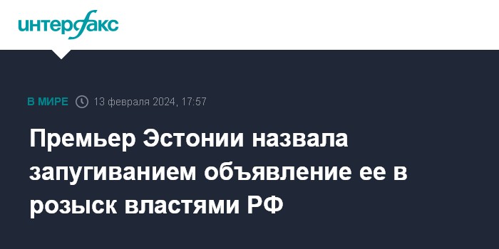Премьер Эстонии назвала запугиванием объявление ее в розыск властями РФ