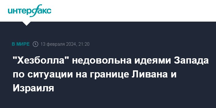 Москва. 13 февраля. INTERFAX.RU - Лидер ливанского шиитского движения "Хезболла" Хасан Насралла заявил, что предложения западных стран по стабилизации ситуации на границе Ливана и Израиля пока что служат интересам лишь израильской стороны.