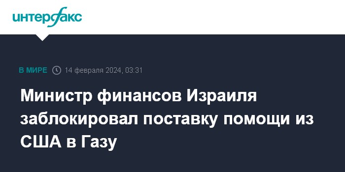Министр финансов Израиля заблокировал поставку помощи из США в Газу