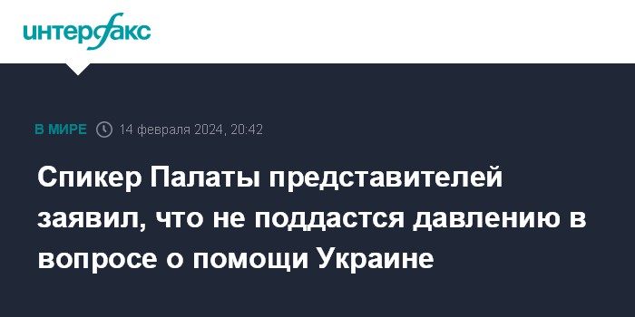 Москва. 14 февраля. INTERFAX.RU - Палата представителей Конгресса США не поддастся давлению Сената, добивающегося принятия законопроекта о финансовой помощи другим странам, в частности, Украине, заявил на пресс-конференции спикер палаты Майк Джонсон.