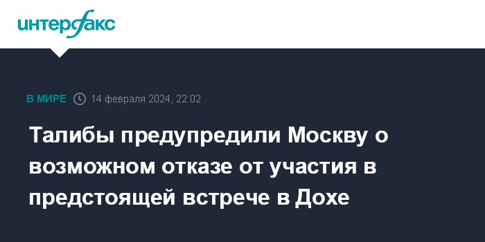"Российский посол запросил информацию о позиции талибов относительно предстоящей встречи в Дохе, чтобы можно было организовать параллельные встречи с министром иностранных дел Муттаки в случае, если будет обеспечено участие Исламского Эмирата Афганистан - ИЭА (так называют талибы свое правительство - ИФ)", - говорится в сообщении.