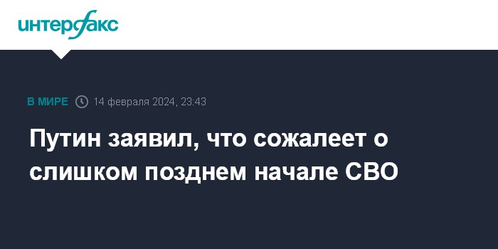 Путин заявил, что сожалеет о слишком позднем начале СВО
