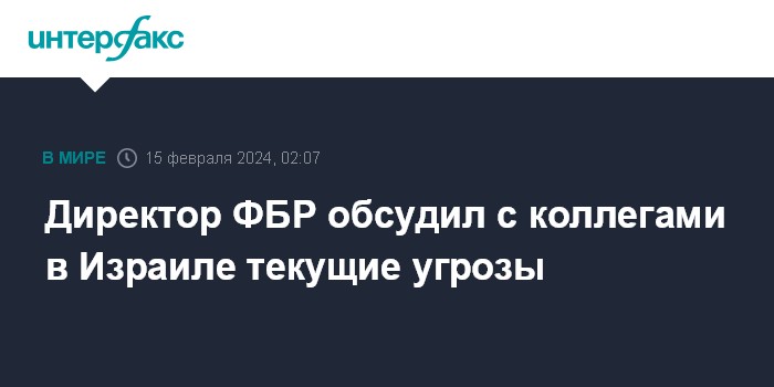 Москва. 15 февраля. INTERFAX.RU - Директор ФБР Кристофер Рэй в среду совершил неожиданную поездку в Израиль, где встретился с коллегами из правоохранительных органов и разведки, чтобы обсудить текущие угрозы, сообщает The Hill.