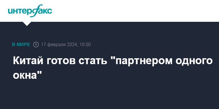 Китай готов стать "партнером одного окна"