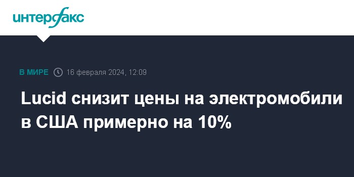 Москва. 16 февраля. INTERFAX.RU - Американская Lucid Group Inc. снизит цены на электромобили, выпущенные в этом году, примерно на 10%, что является очередным признаком сокращения спроса в данной отрасли, пишет MarketWatch.