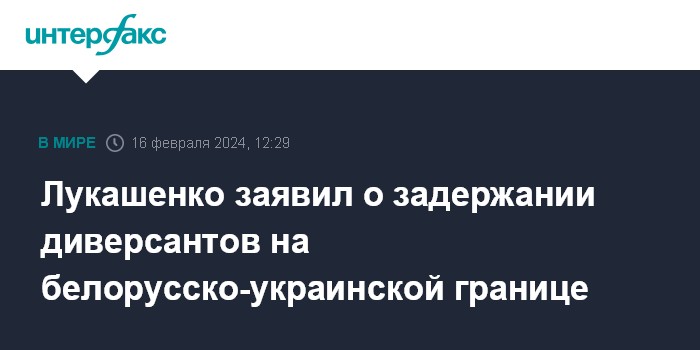 Москва. 16 февраля. INTERFAX.RU - Президент Белоруссии Александр Лукашенко в пятницу заявил о задержании на белорусско-украинской границе группы лиц, готовивших диверсии в России и Белоруссии.