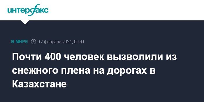 Москва. 17 февраля. INTERFAX.RU - В Кокпектинском районе Абайской области (на востоке Казахстана) завершена эвакуация застрявших в снежных заносах пассажиров автомобилей, сообщает в субботу МЧС.