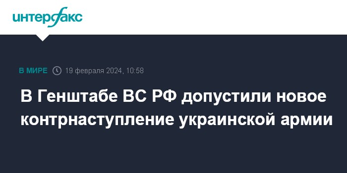 Москва. 19 февраля. INTERFAX.RU - Вооруженные силы Украины могут вновь предпринять попытку контрнаступления в случае масштабной военной помощи со стороны Запада, заявил начальник Главного оперативного управления, первый замначальника Генштаба российской армии Сергей Рудской.