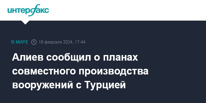 Москва. 19 февраля. INTERFAX.RU - Баку и Анкара тесно взаимодействуют в военной сфере, обсуждают организацию совместного производства в оборонной сфере, а "модель турецкой армии в Азербайджане полностью утвердилась", заявил президент Азербайджана Ильхам Алиев после переговоров с президентом Турции Реджепом Тайипом Эрдоганом.