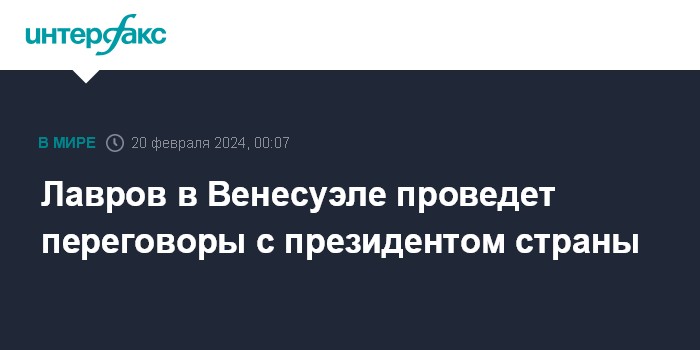 Москва. 20 февраля. INTERFAX.RU - Глава МИД РФ Сергей Лавров во вторник посетит Венесуэлу, где запланированы встречи с президентом страны и исполнительным вице-президентом Венесуэлы, а также планируются переговоры в МИД Венесуэлы, сообщила официальный представитель МИД России Мария Захарова.