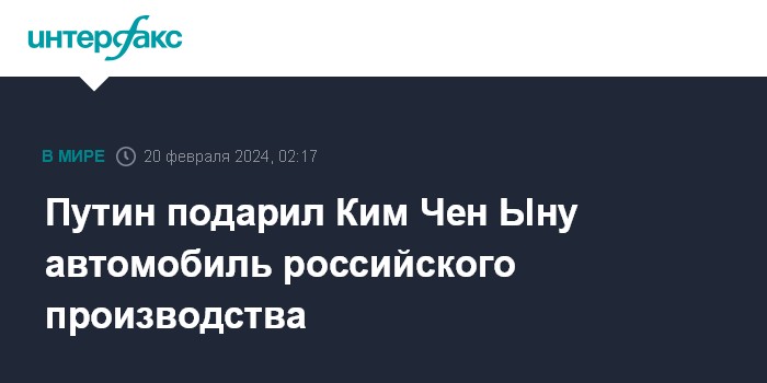 Москва. 20 февраля. INTERFAX.RU - Лидер Северной Кореи Ким Чен Ын получил в подарок от президента России Владимира Путина автомобиль российского производства, сообщает ЦТАК.