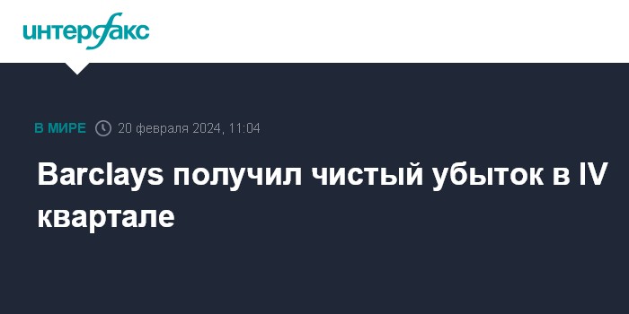 Москва. 20 февраля. INTERFAX.RU - Британский банк Barclays Plc в четвертом квартале 2023 года сократил доналоговую прибыль более чем в 10 раз и получил чистый убыток, а также объявил о реорганизации бизнеса.