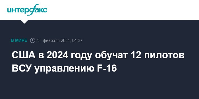 Москва. 21 февраля. INTERFAX.RU - США в 2024 году обучат 12 пилотов ВСУ управлению истребителями F-16, сообщает телеканал CNN.