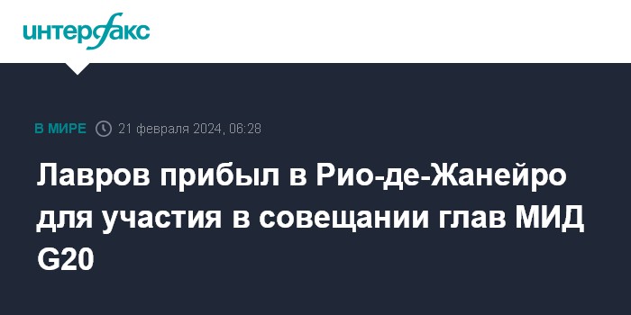 Москва. 21 февраля. INTERFAX.RU - Глава МИД РФ Сергей Лавров прибыл в бразильский Рио-де-Жанейро, сообщила официальный представитель внешнеполитического ведомства России Мария Захарова.