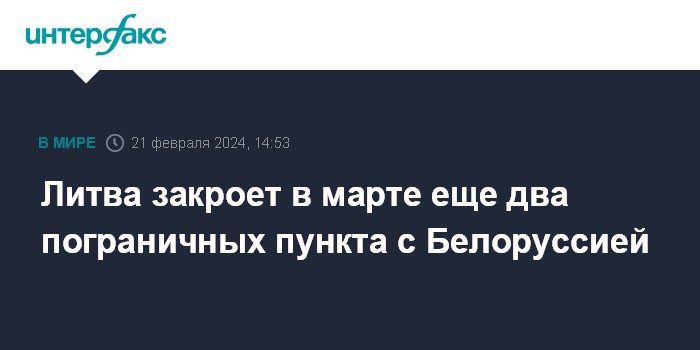 Москва. 21 февраля. INTERFAX.RU - Правительство Литвы в среду приняло решение закрыть с 1 марта пограничные пункты пропуска на границе с Белоруссией "Лаворишкес" (Котловка на белорусской стороне) и "Райгардас" (Привалка).