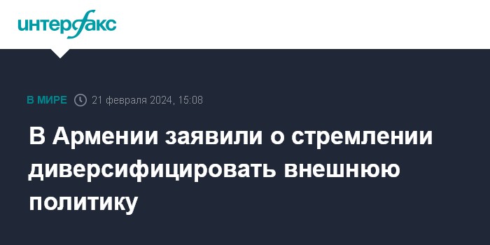 В Армении заявили о стремлении диверсифицировать внешнюю политику