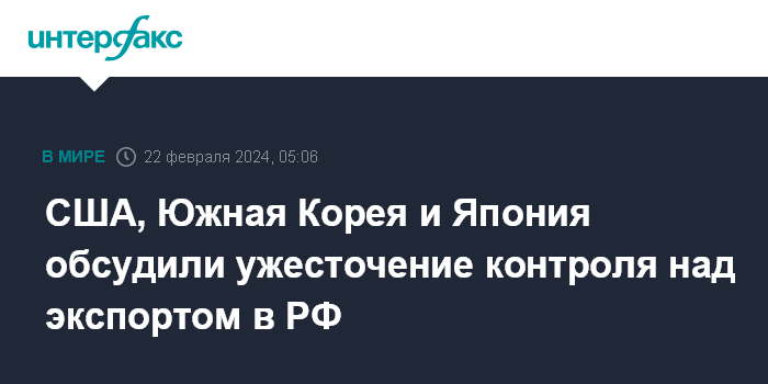 США, Южная Корея и Япония обсудили ужесточение контроля над экспортом в РФ