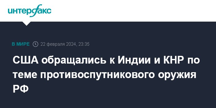 США обращались к Индии и КНР по теме противоспутникового оружия РФ