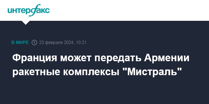 Москва. 23 февраля. INTERFAX.RU - Министр вооруженных сил Франции Себастьян Лекорню в пятницу в Ереване заявил, что Армения может получить от Франции ракетные комплексы "Мистраль".