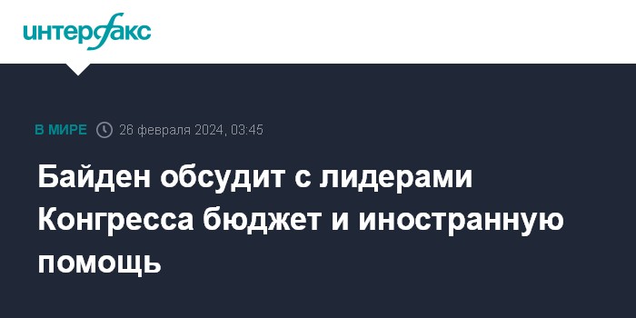 Москва. 26 февраля. INTERFAX.RU - Президент США Джо Байден во вторник встретится с высшими руководителями Конгресса в Белом доме, чтобы попытаться разблокировать средства, которые он планировал истратить на чрезвычайную помощь союзникам, включая Украину, и предотвратить закрытие правительства (шатдаун), сообщил Белый дом.