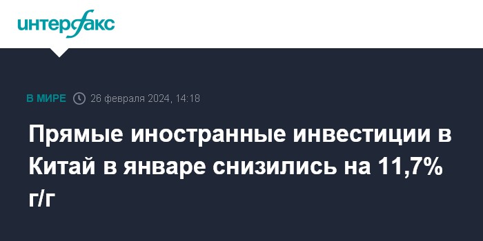 Прямые иностранные инвестиции в Китай в январе снизились на 11,7% г/г