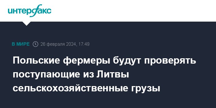 Москва. 26 февраля. INTERFAX.RU - Протестующие польские фермеры, которые планируют с 1 марта перекрыть одну из дорог через литовско-польскую границу, будут проверять содержимое грузовиков, особенно сельскохозяйственные грузы, заявил в эфире литовской радиостанции организатор протеста Кароль Печинский.