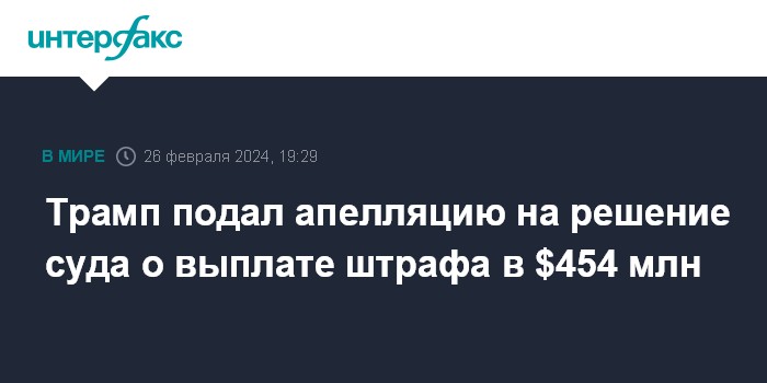 Трамп подал апелляцию на решение суда о выплате штрафа в $454 млн