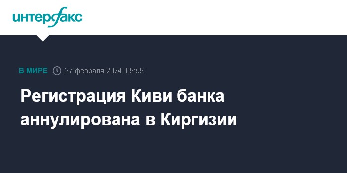Москва. 27 февраля. INTERFAX.RU - Национальный банк Киргизии аннулировал регистрацию Киви банка, сообщил начальник Управления платежных систем НБ страны Айбек Султаналиев на пресс-конференции во вторник.