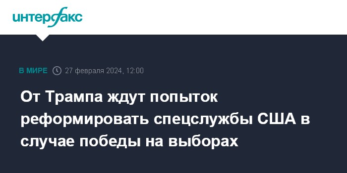 Москва. 27 февраля. INTERFAX.RU - Дональд Трамп в случае своего избрания президентом США будет добиваться серьезных изменений в работе американских спецслужб - ЦРУ, военной разведки и ФБР, сообщило издание Politico, ссылаясь на мнение бывших высокопоставленных чиновников в его прежней администрации.