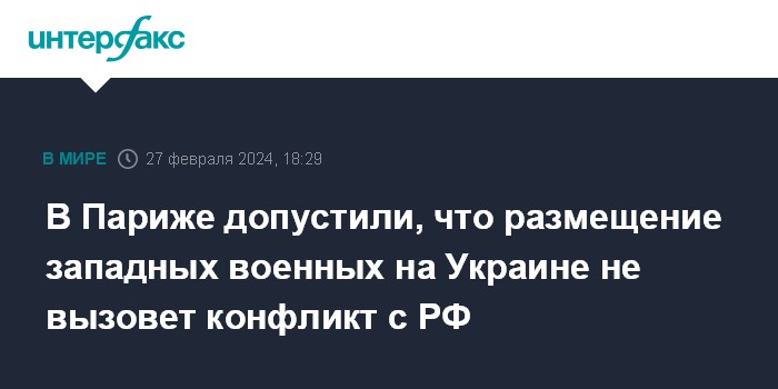 В Париже допустили, что размещение западных военных на Украине не вызовет конфликт с РФ
