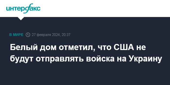 Москва. 27 февраля. INTERFAX.RU - США не будут отправлять войска на Украину, заявила во вторник представитель Совета национальной безопасности Белого дома Эдриен Уотсон.