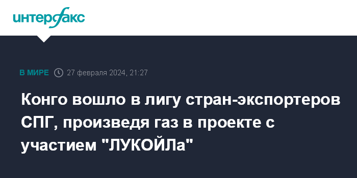Конго вошло в лигу стран-экспортеров СПГ, произведя газ в проекте с участием "ЛУКОЙЛа"
