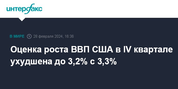 Оценка роста ВВП США в IV квартале ухудшена до 3,2% с 3,3%