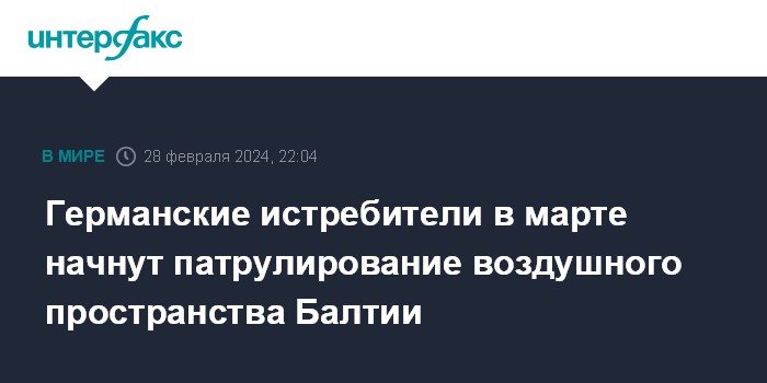 "Начиная с пятницы мы будем готовы для выполнения миссий (которые начнутся 1 марта). Тесно взаимодействуя с принимающей страной Латвией, нашими бельгийскими и французскими коллегами, дислоцированными в Литве, а также авиадиспетчерами и региональными центрами контроля, мы продемонстрируем приверженность НАТО коллективному сдерживанию и обороне", - заявил командир немецкого авиаотряда подполковник Свен Якоб.