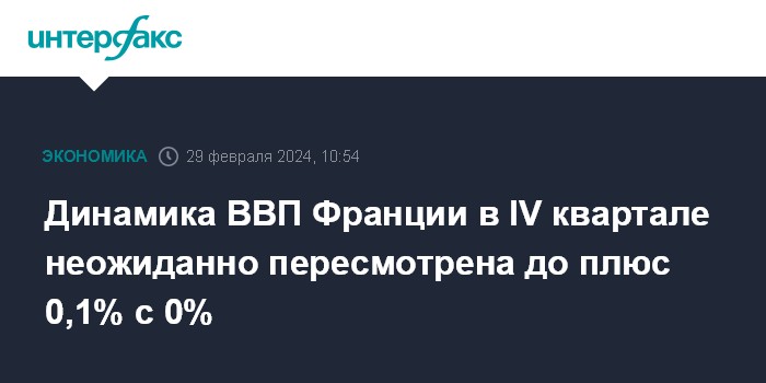 Динамика ВВП Франции в IV квартале неожиданно пересмотрена до плюс 0,1% c 0%