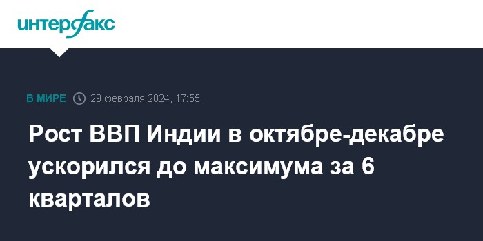 Рост ВВП Индии в октябре-декабре ускорился до максимума за 6 кварталов