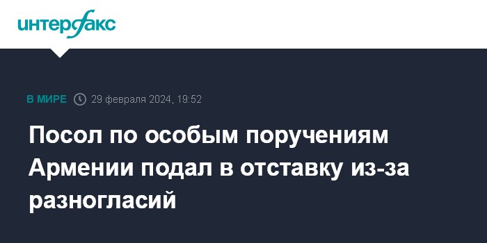 Посол по особым поручениям Армении подал в отставку из-за разногласий