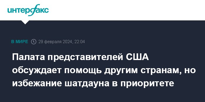 Палата представителей США обсуждает помощь другим странам, но избежание шатдауна в приоритете