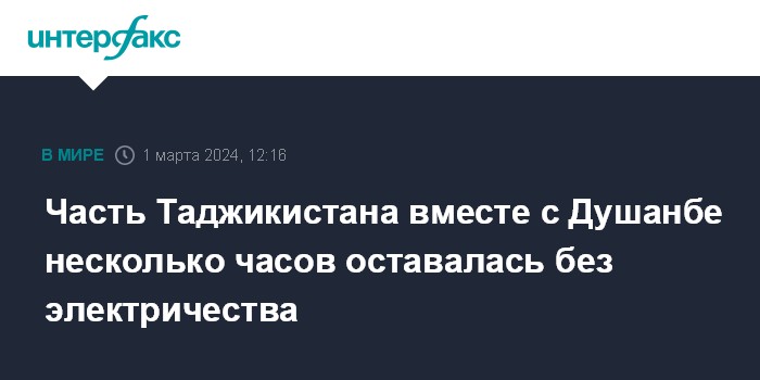 Москва. 1 марта. INTERFAX.RU - Значительная часть Таджикистана, в том числе Душанбе, на несколько часов была обесточена.