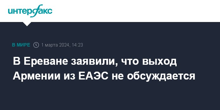 В Ереване заявили, что выход Армении из ЕАЭС не обсуждается
