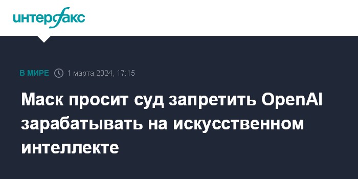 Миллиардер просит суд запретить Альтману, Брокману, OpenAI и Microsoft, которая не входит в число ответчиков по его иску, зарабатывать на УИИ и требует возвращения OpenAI к принципу open source.
