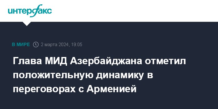 Москва. 2 марта. INTERFAX.RU - Положительная динамика наблюдается в мирных переговорах Баку и Еревана, заявил министр иностранных дел Азербайджана Джейхун Байрамов.