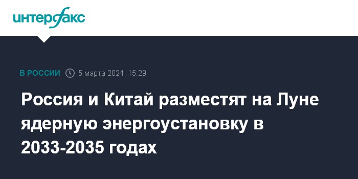 "Сегодня серьезно рассматриваем проект, где-то на рубеже 2033-2035 годов, доставку и монтаж на лунной поверхности с нашими китайскими коллегами энергетической установки", - заявил он.
