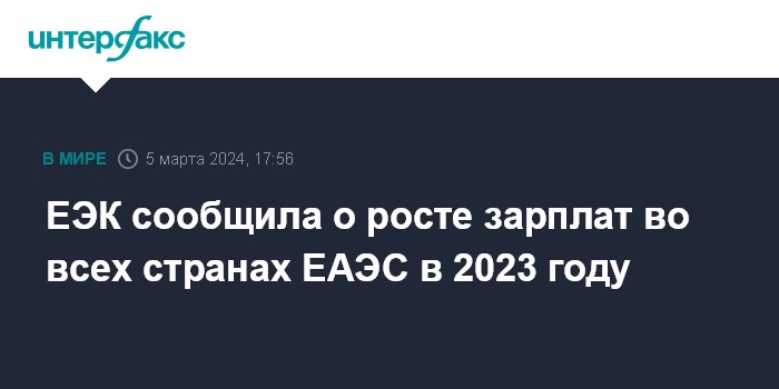 ЕЭК сообщила о росте зарплат во всех странах ЕАЭС в 2023 году