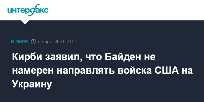 Москва. 5 марта. INTERFAX.RU - Президент США Джо Байден с самого начала конфликта на Украине обозначил, что не будет направлять туда войска, заявил во вторник советник Белого дома Джон Кирби.