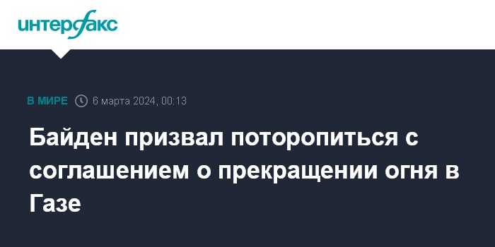 Москва. 6 марта. INTERFAX.RU - Президент США Джо Байден заявил, что считает важным попытаться согласовать прекращение огня в секторе Газа между Израилем и ХАМАС до начала Рамадана.