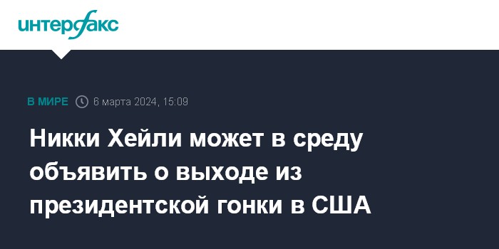 Никки Хейли может в среду объявить о выходе из президентской гонки в США