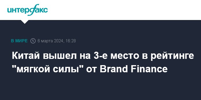 Китай вышел на 3-е место в рейтинге "мягкой силы" от Brand Finance