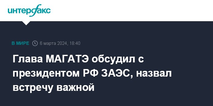 Глава МАГАТЭ обсудил с президентом РФ ЗАЭС, назвал встречу важной