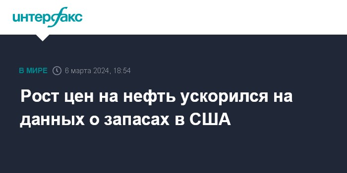 Москва. 6 марта. INTERFAX.RU - Рост цен на нефть усилился после выхода данных об изменении запасов топлива в США на прошлой неделе.